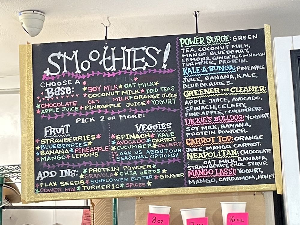 24 oz. Our house-made lemonade blended with ice and your choice of fruit. banana, mango, strawberry, blueberry, cucumber or pineapple for an additional charge.