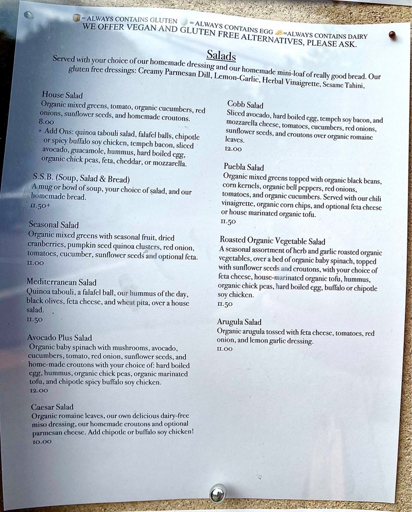 Soy bacon, organic romaine, tomato, red onion, and choice of mayonnaise or Vegan mayo. Add sliced avocado for an additional charge.